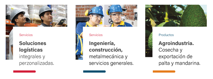 “Innovación, sostenibilidad y calidad para la industria” Somos una empresa peruana que ofrece un sistema integral de soluciones en empaques, logística, metalmecánica e ingeniería y construcción.Conoce nuestro Servicio 360° Transformamos la experiencia de nuestros clientes a través de nuestras unidades de negocio. Unidades de Negocio Certificaciones internacionales que respaldan calidad, inocuidad y buenas prácticas. Innovación constante, con procesos flexibles y tecnología de vanguardia. Compromiso sostenible, reduciendo impactos y generando valor responsable. La confianza de grandes marcas respalda nuestro trabajo. Nuestros Clientes